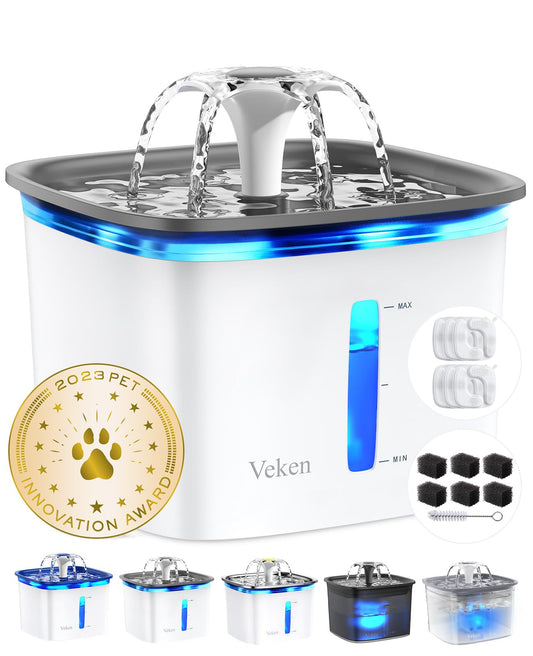 Veken Innovation Award Winner 95oz/2.8L Pet Fountain, Automatic Cat Water Fountain Dog Water Dispenser with Replacement Filters for Cats, Dogs, Multiple Pets (Blue, Plastic)